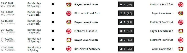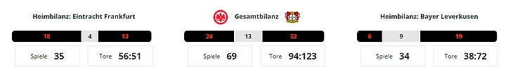 «Айнтрахт» и «Байер» сыграли уже 68 матчей в Бундеслиге, и никогда их матчи не заканчивались безголевой ничьёй. Это самое большое количество матчей без забитых мячей среди всех противостояний.