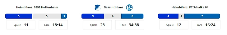 «Шальке» выиграл только один матч в Бундеслиге из 11 в Зинсхайме. В последнем туре 2015/16 гельзенкирхенцы победили со счётом 4:1, а гол за «Хоффенхайм» тогда забил нынешний нападающий «Шальке» Марк Ут.