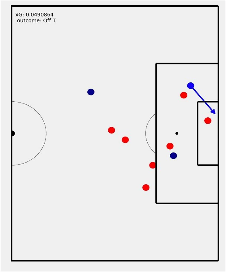 Вот почему в 2018 Statsbomb выпустили в свет новые данные: freeze frame (стоп-кадр). Эти данные уже включают в себя позиции всех игроков вокруг мяча для каждого нанесенного удара, включая вратарей. Смотри пример:
