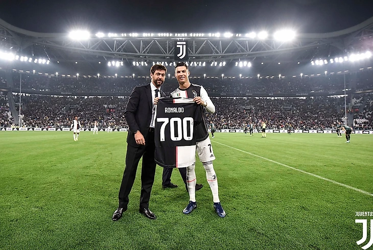 Нападающий «Ювентуса» Криштиану Роналду перед матчем восьмого тура чемпионата Италии против «Болоньи» получил специальный приз — футболку с номером 700.