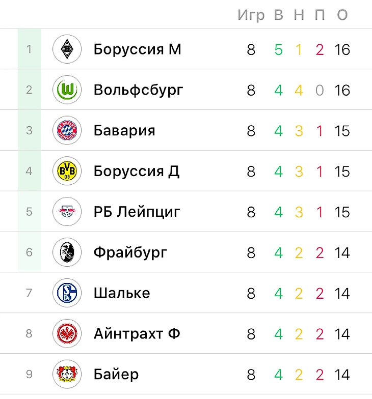 В Бундеслиге дикая плотность: от первого места до девятого всего 2 очка. Лидирует не «Бавария»