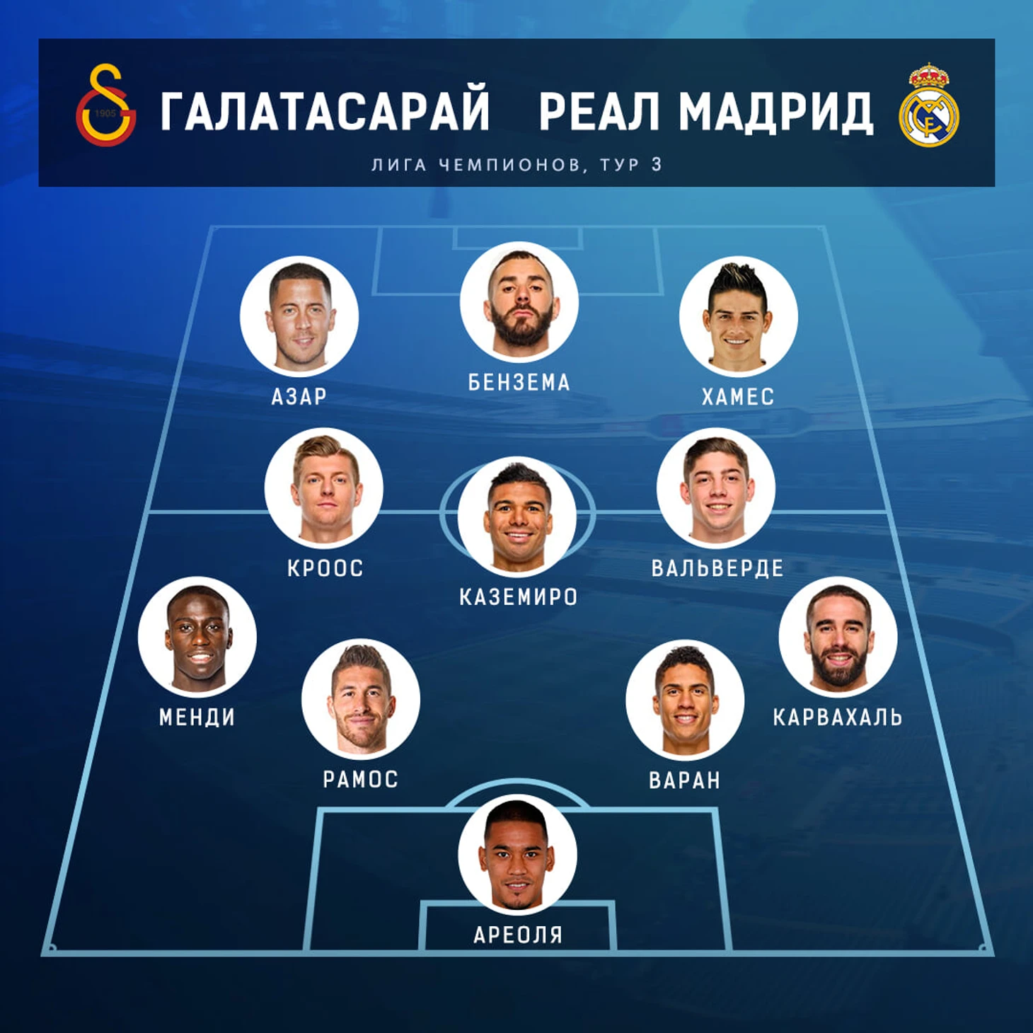 📊 Куртуа или Ареоля? Хамес или Родриго? Выбираем состав на матч с «Галатасараем» 👍👎