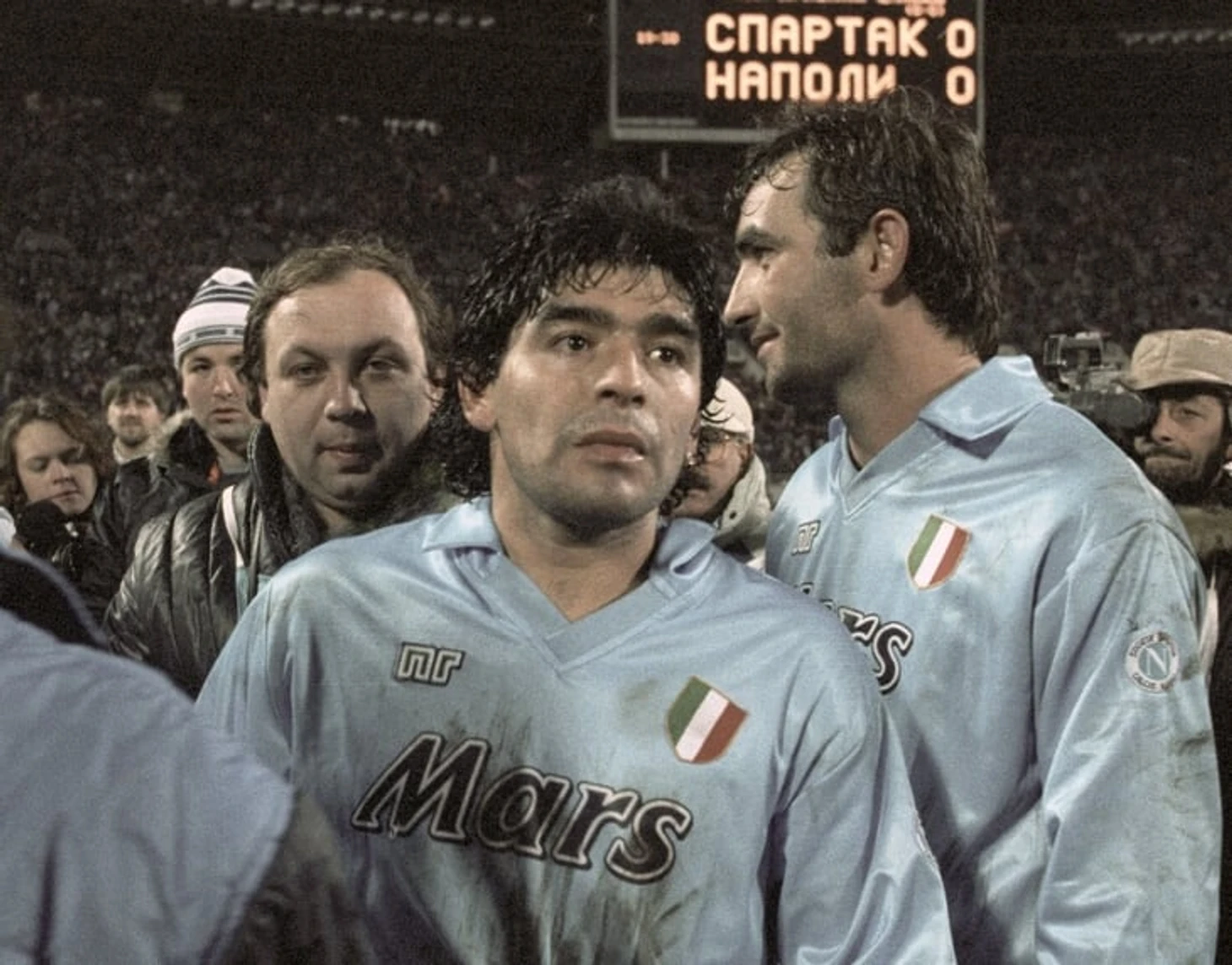 Красная площадь была огорожена, пройти туда было невозможно, и Марадону охранники не узнали. Но рядом с Марадоной оказались итальянские журналисты, они начали обсуждать: «Марадона, Марадона!» Охранники услышали – Марадона? И пустили Марадону вместе с женой на Красную площадь – и он в два часа ночи там погулял. На следующий день он не планировал, что его выпустят на матч, но, учитывая проблемы с составом «Наполи», его посадили на скамейку, потом пришлось и выпустить, а затем в серии пенальти он еще и забил Станиславу Саламовичу Черчесову. И такое было в карьере Марадоны.