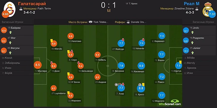 Кроос — лучший, Вальверде — худший. Оценки игроков «Реала» в матче с «Галатасараем»