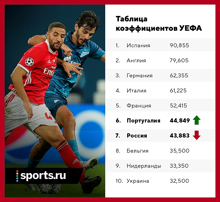 Португалия отрывается от России в рейтинге УЕФА. Привет, две команды в Лиге чемпионов