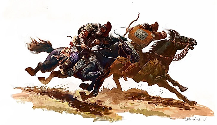 И прошу не особо придираться к последней картинке - скорее всего, это скифы или сарматы. Но уж больно красиво художник их изобразил. Пусть это будут персы. Доблестные ветераны Бахрама Чубина.