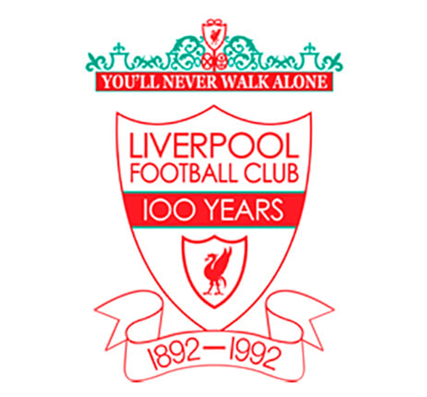 Следующее сильное изменение логотипа было в 1992 году, когда «Ливерпулю» исполнилось 100 лет. На эмблему добавили упоминание о юбилее, «Ворота Шенкли» (ворота на территории «Энфилда», открытые в честь одного из самых успешных менеджеров в истории клуба) и надпись You’ll Never Walk Alone.