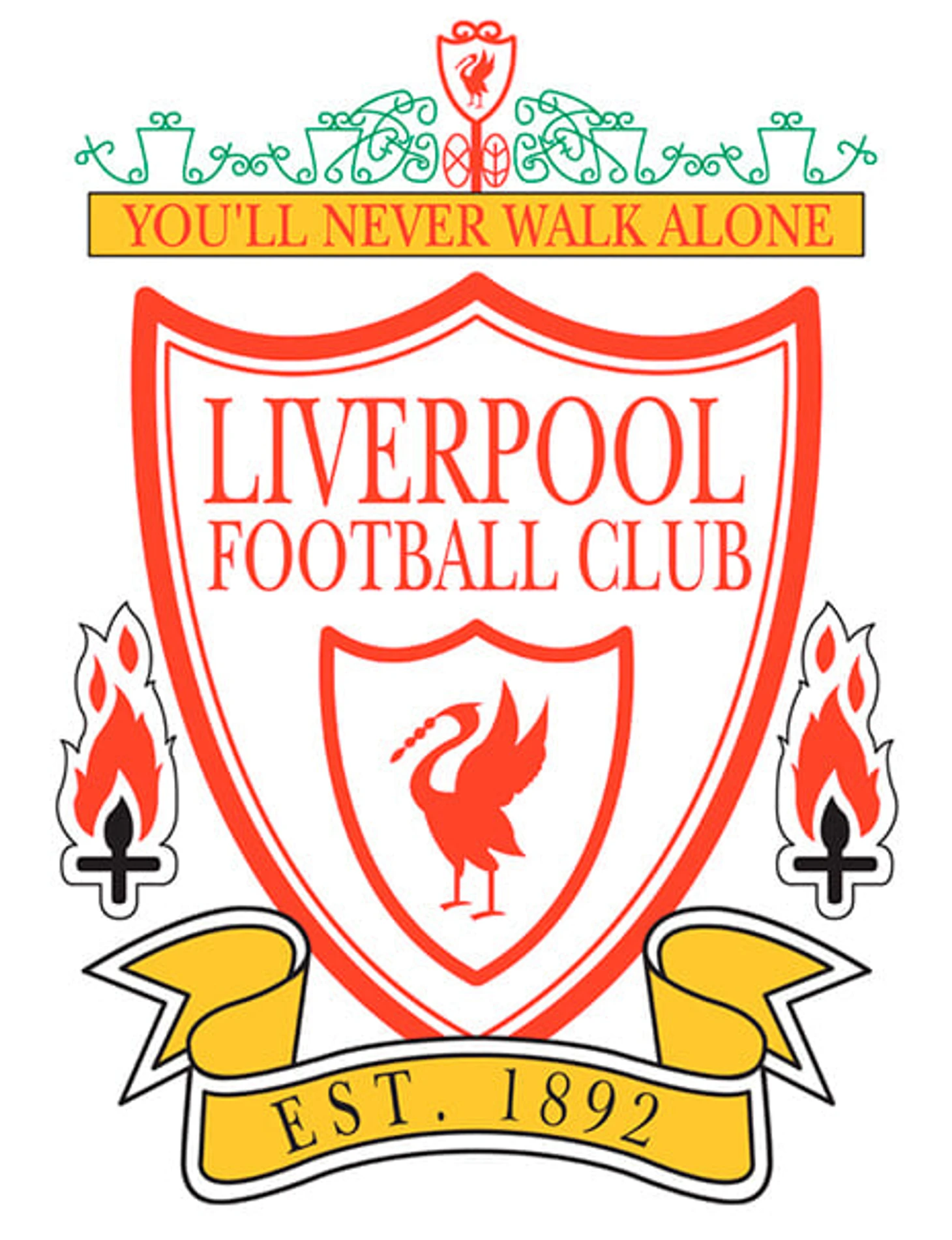 «Ливерпуль» использует клубный логотип на футболках с 50-х. Сначала это было просто изображение лайверберда. В 1955-м добавили овал и надпись LFC, а в 1968-м овал убрали. В это время «Ливерпуль» был особенно успешен: одиннадцать побед в чемпионате, четыре Кубка европейских чемпионов, сделали требл в 1984 году (чемпионат, Кубок европейских чемпионов и Кубок Лиги).