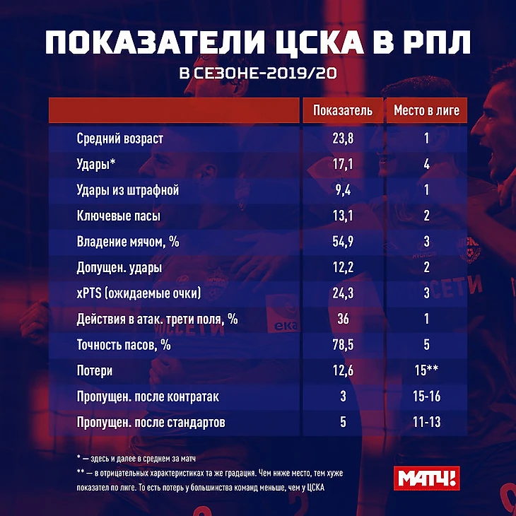 И дело не только в цифрах. Даже без них видно, как качественно ЦСКА проводит первые таймы абсолютно в любой ситуации. На ужасном огороде в Уфе, против конкурентов в РПЛ, в еврокубках и в гостях, и дома. Да, во вторые 45 минут идут провалы, но на это есть объективные причины (о них — ниже). Главное, у ЦСКА есть все составляющие качественной команды: прессинг, умение вскрывать «автобусы» и позиционная оборона (именно позиционная. С контратаками соперника проблемы).