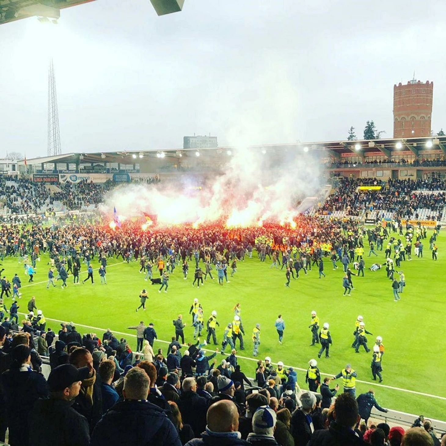 После игры на поле выбежали болельщики – полиция лишь обозначила присутствие и не мешала счастью.