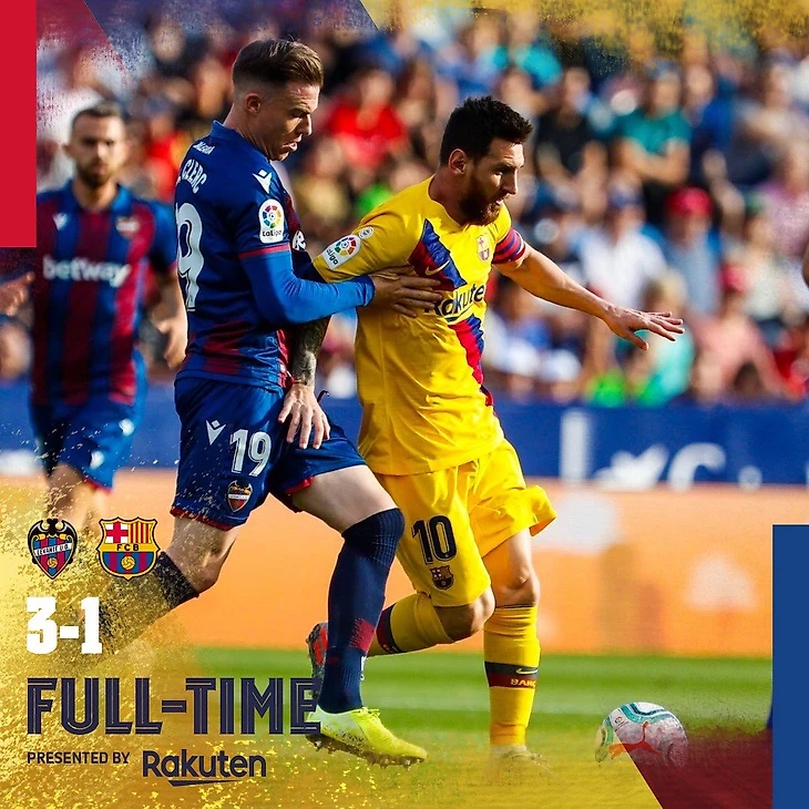 В свою очередь Барселона гостила у Леванте в рамках 12-го тура Ла Лигии выдала один из самых худших матчей за последнее время.У каталонского клуба не получалось абсолютно ничего в создании атак и опасных моментов,однако на 38-й минуте Барса получила возможность пробить пенальти.К радости фанатов сине-гранатовых Месси его реализовал, однако три безответных гола во втором тайме принесли Леванте три очка и возможность подняться на восьмое место в Ла Лиге.