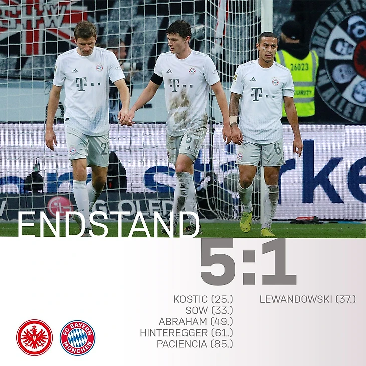 Пожалуй никто не ожидал того что в этот субботний вечер два гранда европейского футбола потерпят сокрушительные поражения.Речь идёт о Барселоне и Баварии, которые умудрились испортить настроение не только своим фанатам,но и любителем ставок.Бавария отправилась в Франкфурт-на-Майне разумеется за победой, но получили по итогу разгром со счётом 5:1.Даже с учётом того,что Бавария играла в меньшинстве с 9-й минуты после удаления Боатенга этот разгром сильно бьёт по репутации мюнхенского клуба и по авторитету Нико Ковача.