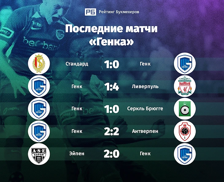 Одна победа в пяти играх. «Генк» даже у себя в лиге идет на восьмом месте. В гостях он и вовсе выиграл всего однажды за шесть матчей, в Кубке у команды из третьего дивизиона.