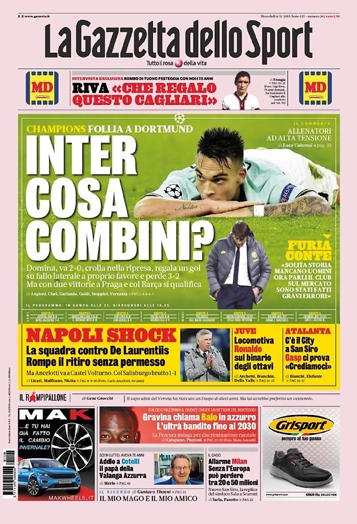 «Интер», что ты делаешь? Заголовки Gazzetta, TuttoSport и Corriere за 6 ноября