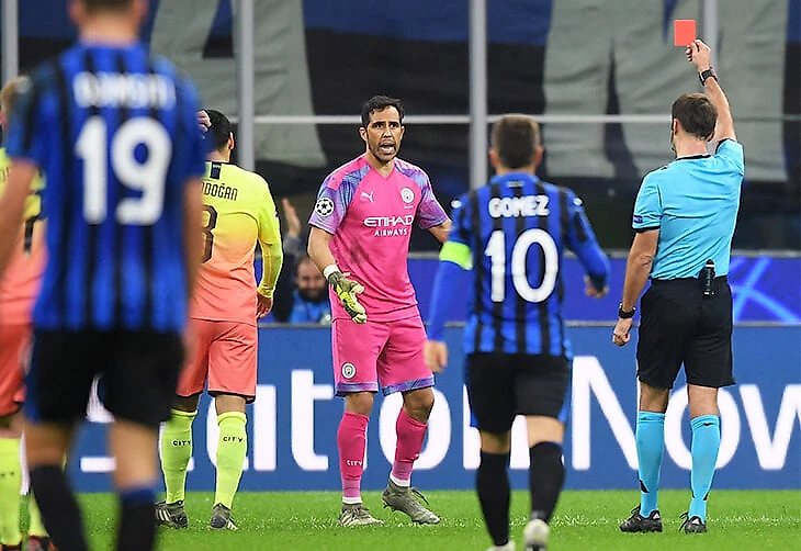 За десять минут до конца основного времени Йосип Иличич выбегал один на один, Браво вышел за пределы штрафной и пошел на фол, бросившись в ноги словенцу. Судья послушал ВАР и справедливо выгнал голкипера «Сити» с поля.