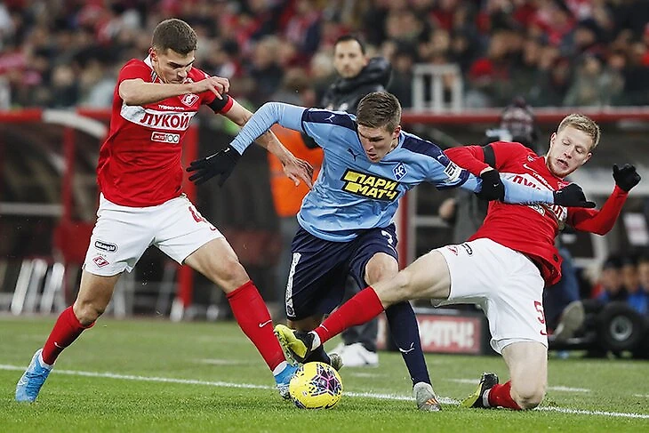 Высокий темп который поддерживали красно-белые первые пол часа не мог не сказаться. Ребята всё же плохо готовы физически и с 30-й минуты сбавили обороты. Этим воспользовался соперник и на некоторое время прижал хозяев к воротам. Не так что-бы было опасно, но игра шла на половине поля Спартака. Стоит отметить, что в целом защитники были на уровне, а Максименко уверенно играл на выходе. Здорово цементировал опорную зону Крал. Одним словом тайм завершался пусть и не ярко, но очень строго.