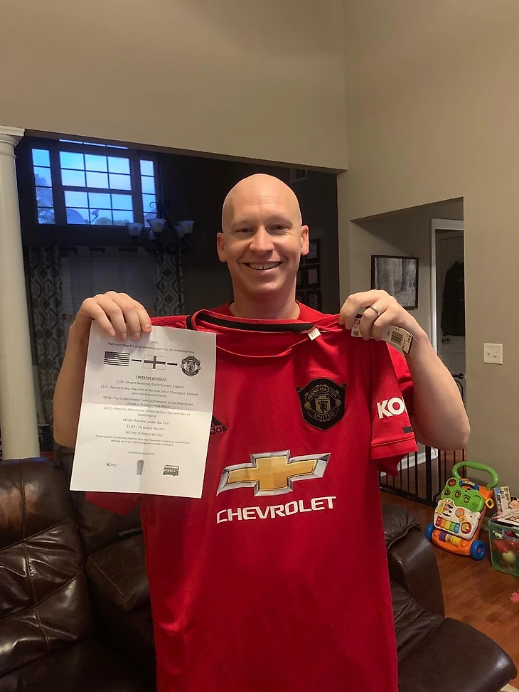 16 сентября пользователь твиттера Мэтт Вэймонт написал о счастливой истории своего друга из США, Джона. Парень на фото победил рак третьей стадии. Он является фанатом «Манчестер Юнайтед», но никогда не был в Англии на Олд Траффорд. Друг рассказал, что денег, которые они собрали на его лечение, достаточно, чтобы привезти Джона в Англию, но билет на матч им уже не достать.