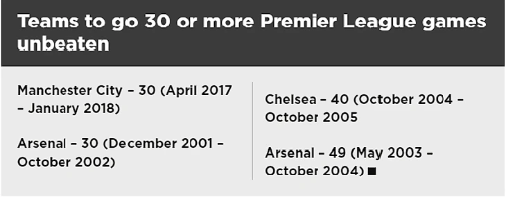 В сезоне 2003/04 Арсенал вновь выдал серию без поражений, на сей раз она составила сорок девять матчей. С мая 2003 по октябрь 2004 "Канониры" не проигрывали в чемпионате Англии, прежде чем Манчестер Юнайтед прервал самую впечатляющую серию без поражений в истории Премьер-лиги.