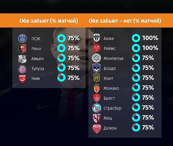 Перейдем к рынку на обоюдные голы. Есть новые команды с трендами: