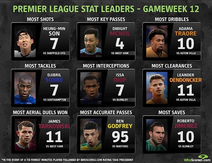 Лидеры по основным статистическим показателям в 12 туре Премьер-лиги