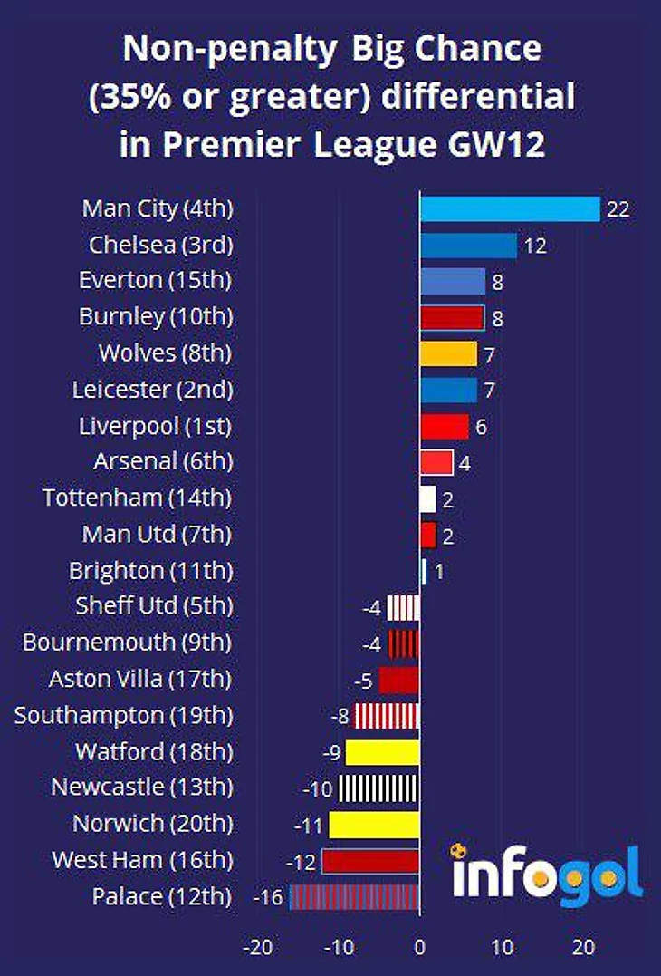 Разница между созданными и допущенными явными голевыми моментами команд: