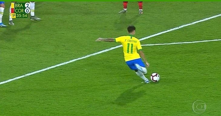 блестящая работа в треугольниках,быстрое, в первую очередь вертикальное движение мяча. Где все это "дремало", да даже "храпело" в предыдущих 5 играх? Думаю, Тите с Клебиньо разберутся и больше такого не допустят. Отсюда и опасность у ворот соперника и вывернутые шейные позвонки корейских защитников,просто не успевавших за перемещениями и открываниями бразильцев и вынужденных фолить. Один из таких фолов реализовал Коутиньо на 36-ой минуте.