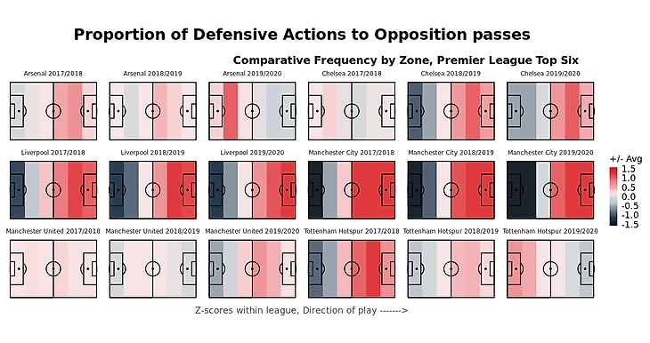 Отказ от высокого давления и негативный тренд, который начался еще в прошлом сезоне, очень четко прослеживается на прессинг-карте: