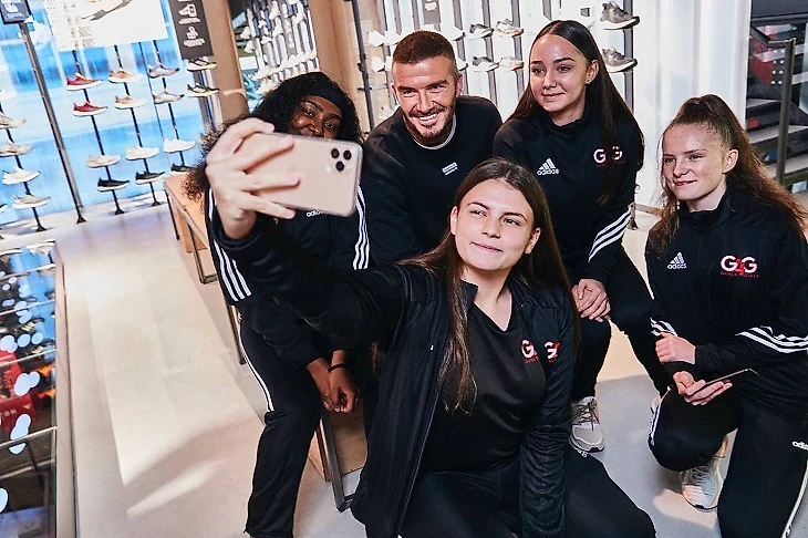 Бекхэм без предупреждения появился в магазине adidas. Одна девушка от удивления уронила кроссовки