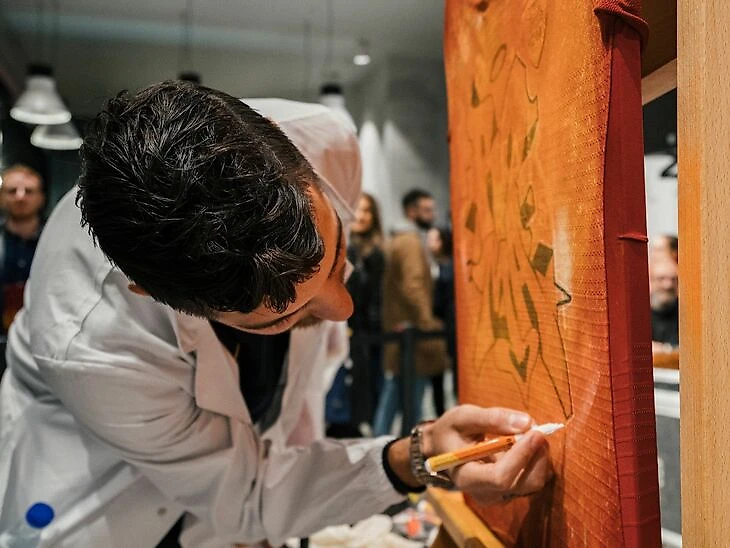 Николо Дзаньоло, Лоренцо Пеллегрини и Мирко Антонуччи – «Голоса молодой Италии» – в белых халатах, с кисточками и баллончиками помогали художникам.