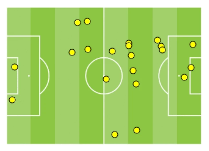 Оливье Жиру вышел в стартовом составе «Челси» впервые со средина августа, он коснулся мяча всего 21 раз в матче против «Вест Хэма». Вы можете увидеть детали на карте ниже - это самый низкий показатель среди всех игроков «Челси», что выходили в стартовом составе в этом сезоне. Его показатель в три касания в чужой штрафной тоже стал самым маленьким с сентября 2018 года, когда «Синие» сыграли с «Ливерпулем» ничью 1:1.