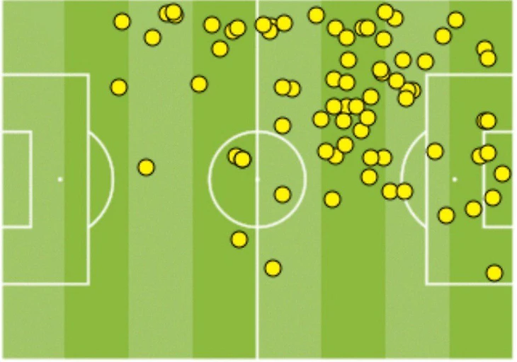У Миши Батшуайи в текущем сезоне Премьер-Лиги в среднем один удар по воротам каждые 7,4 минуты. Конечно, здесь следует учитывать тот факт, что все его выходы на поле были исключительно в качестве замены. На его счету 1 гол в этом сезоне АПЛ, хотя общий xG составляет 2,21, что также может быть свидетельством того, что он не стесняется брать на себя инициативу и пробивать из сложных позиций.