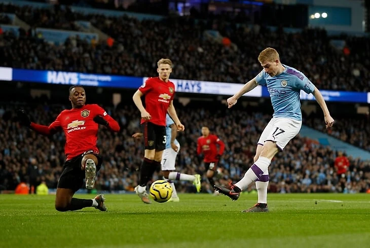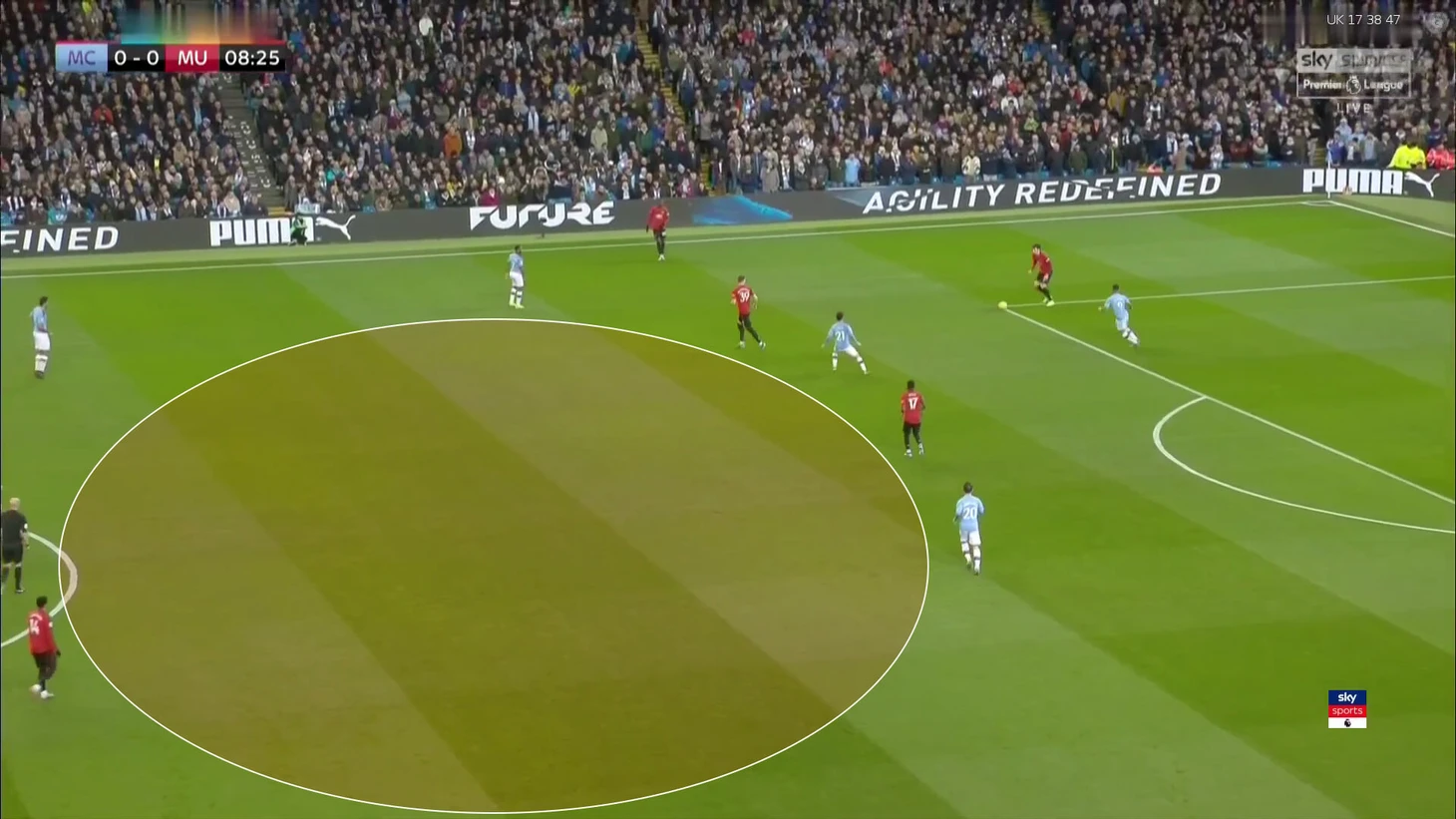 Может, говорить о контроле матча со стороны излишне, но контролировать приемлемый уровень опасности атак Сити у МЮ получилось очень долго. У Сити не получалось вскрывать команду с флангом, Кдб был лишён любимой опции, не хватало остроты в полуфлангах и полностью был выключен приём с переводами на свободный фланг.