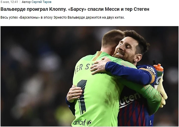 В том тексте я доказывал, что весь успех «Барселоны» в эпоху Эрнесто Вальверде держится на двух китах – Месси и тер Стегене.