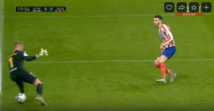 А затем должен был забивать Мората. Но тер Стеген оказался снова на чеку, вытащив удар испанца с линии вратарской. Как он это делает?