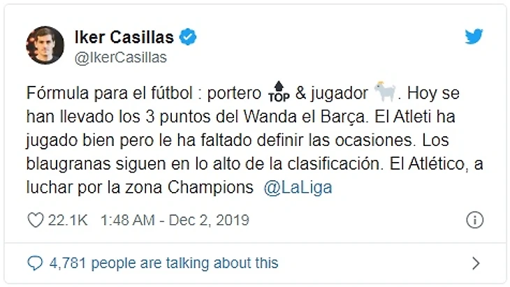 А Икер Касильяс и вовсе окрестил данное сочетание ключевых фигур команды основой всего современного футбола. После матча «Атлетико» – «Барса» знаменитый вратарь сборной Испании написал в твиттере следующую фразу: