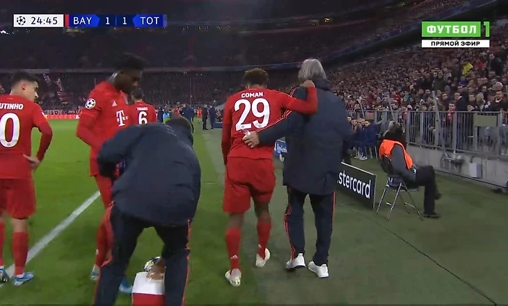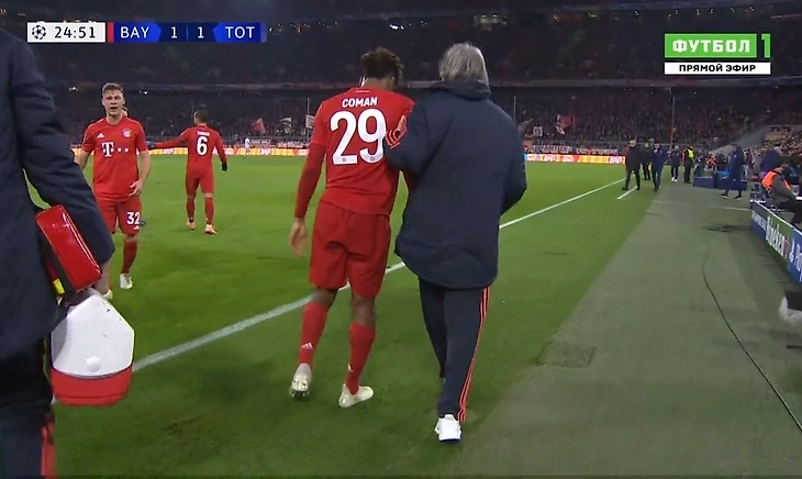 В последнем туре группового этапа ЛЧ все начиналось хорошо: Кингсли открыл счет на 14-й минуте, но всего через 10 минут от радости ничего не осталось. Коман покинул поле – снова травма.
