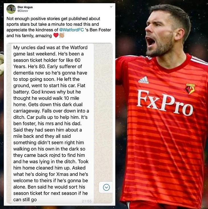 Вратарь «Уотфорда» Бен Фостер стал героем настоящей рождественской истории.