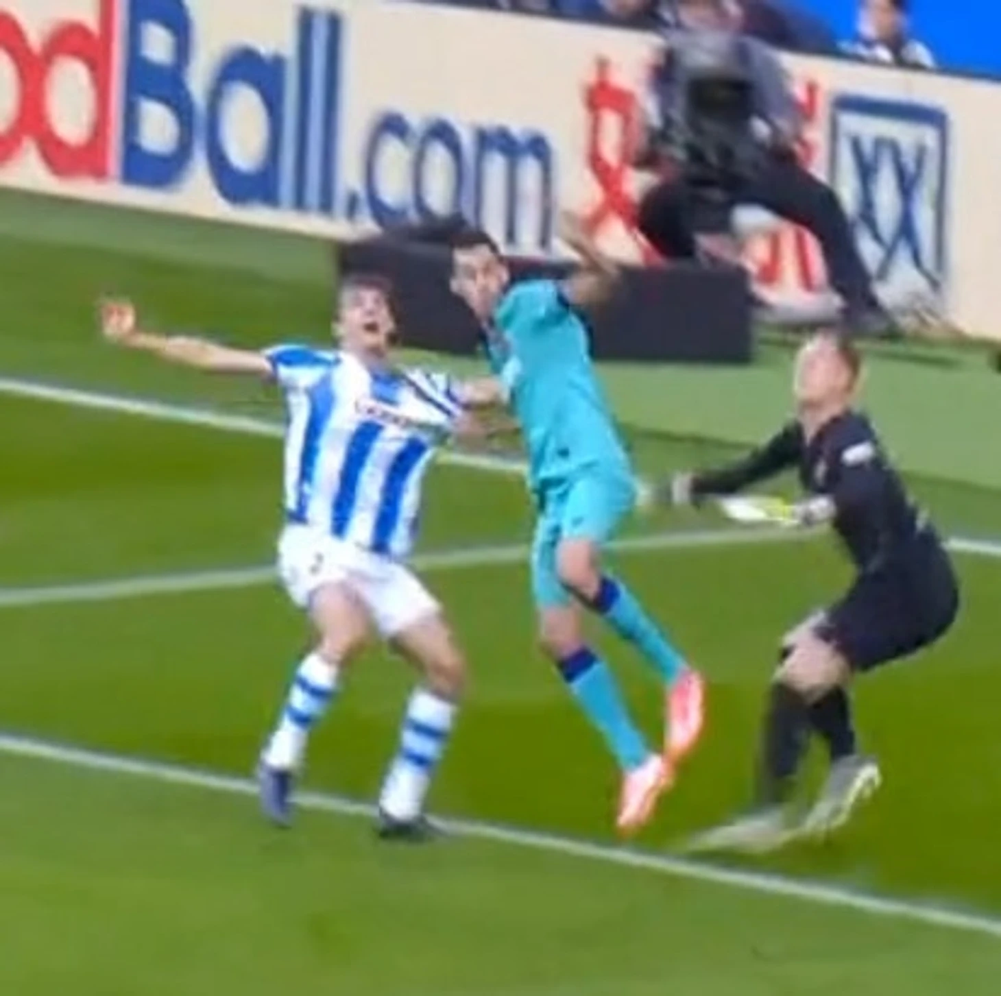 Всё это можно объединить одним словом: ПОЗОР. Не может так играть команда со своим главным историческим конкурентом. Дома, при полных трибунах, фактически за 1-е место в таблице. Но разве с Атлетико и РС было лучше? Абсолютно та же порнография. Каталонцев валтузили и те, и другие. На Ванде как всегда выручила парочка тер Штеген-Месси. Гол стал возможен лишь в концовке, когда матрасники набегались и больше не могли тотально зажимать Барсу на всех участках поля. В Сан-Себастьяне было много вопросов к судейству. В начале встречи высосанный из пальца пенальти за минимальную задержку на угловом (тогда надо вообще каждый угловой ставить пенки, игроки ведь то майки друг с друга тащат, то заваливают борцовскими приемами), а на последних минутах напротив: один защитник откровенно тянул за футболку Пике, укладывая его на газон, а другой еще и помогал сзади.