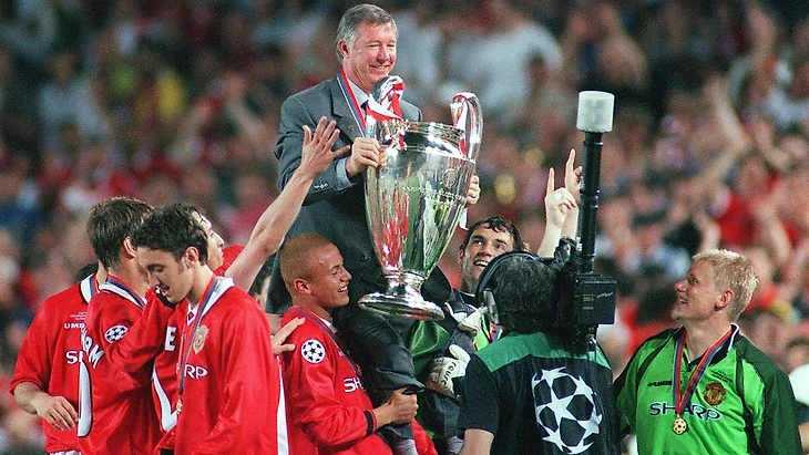 Сэр Алекса́ндр Че́пмен Фе́ргюсон с Кубком Чемпионов.