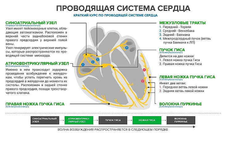 Любое нарушение в ее работе может провоцировать электрическую нестабильность. На любом участке из рисунка выше распространение импульса может быть заблокировано, замедлено, может вовсе не возникнуть, могут сформироваться дополнительные очаги возбуждения и так далее. В результате есть риск асистолии (остановки) или наоборот – фибрилляция желудочков (нарушение сердечного ритма, при котором сердце бьется настолько часто и беспорядочно, что эти сокращения становятся бессмысленными – желудочки, не успев наполниться кровью сокращаются, толком ничего не выбрасывая по сосудам).