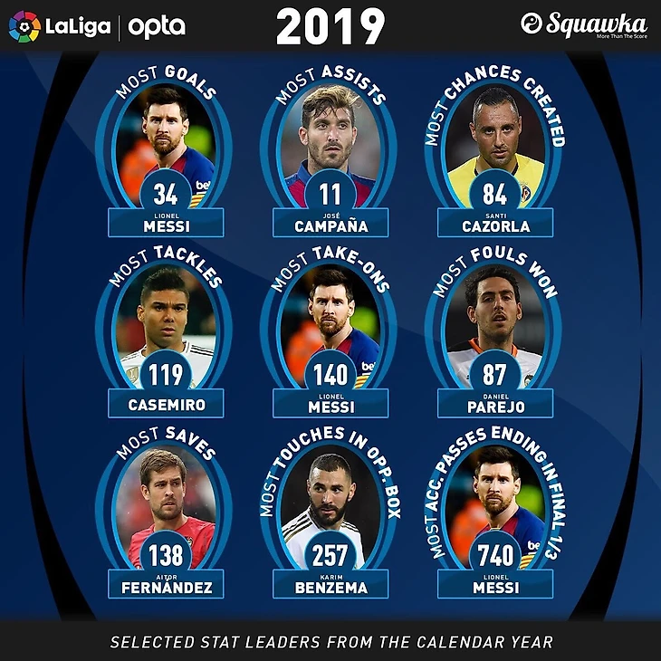 Каземиро и Бензема в статистических лидерах Ла Лиги в 2019-м году