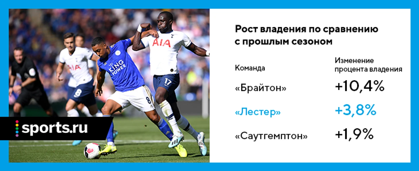 В АПЛ только «Брайтон» еще сильнее улучшил владение относительно прошлого сезона (но у них была низкая стартовая точка). Такой прогресс важен, пускай пока и не приводит к большому количеству моментов именно из позиционных атак. «Лестер» все равно получает возможность лучше контролировать матчи и меньше обороняться.