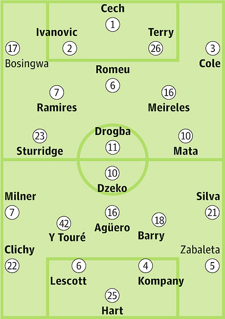 Запасные: Тернбулл, Илариу, Феррейра, Бертранд, Микел, Макихран, Лэмпард, Малуда, Торрес, Лукаку, Калу