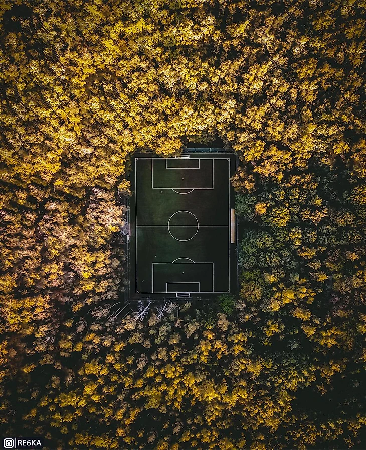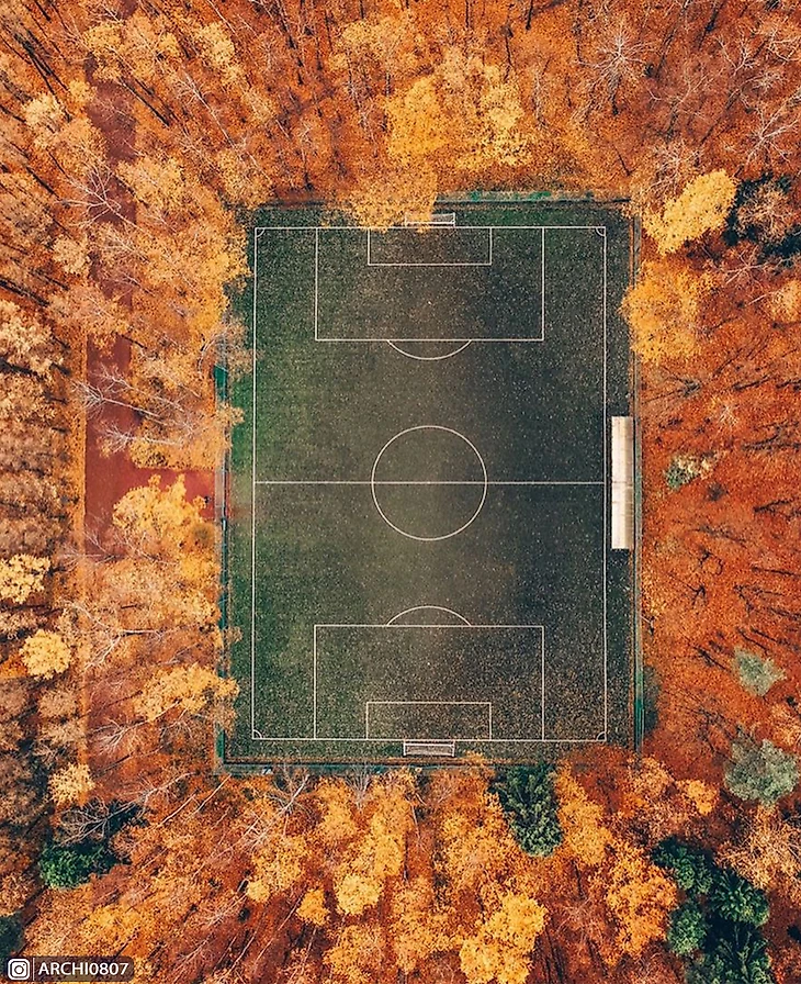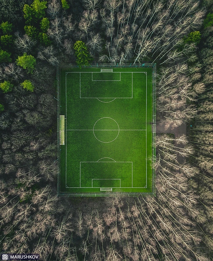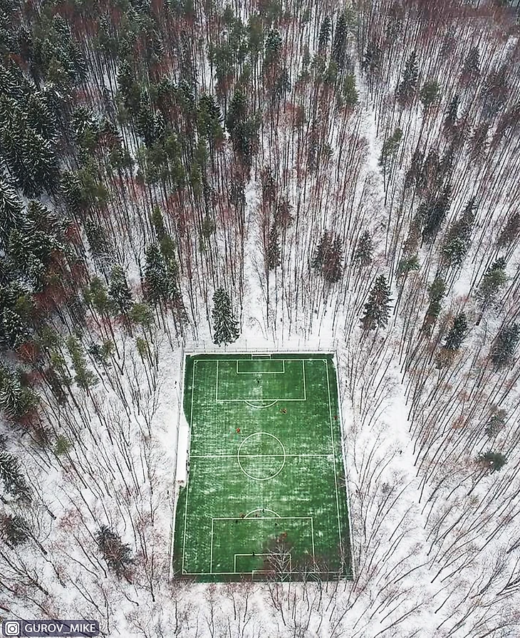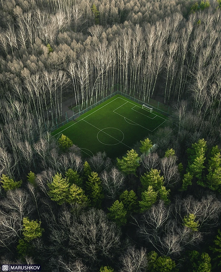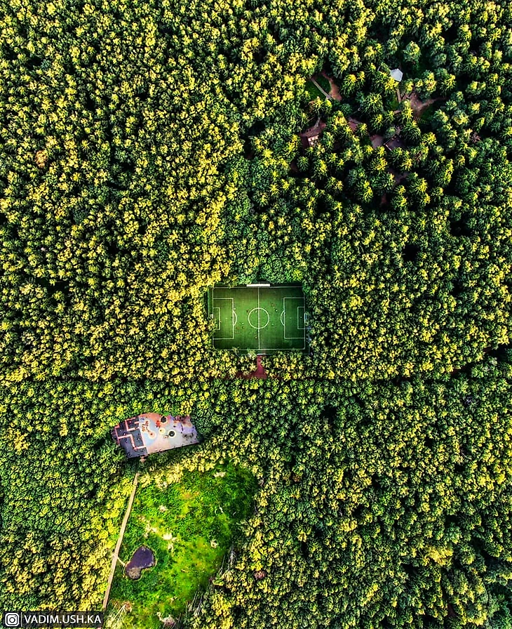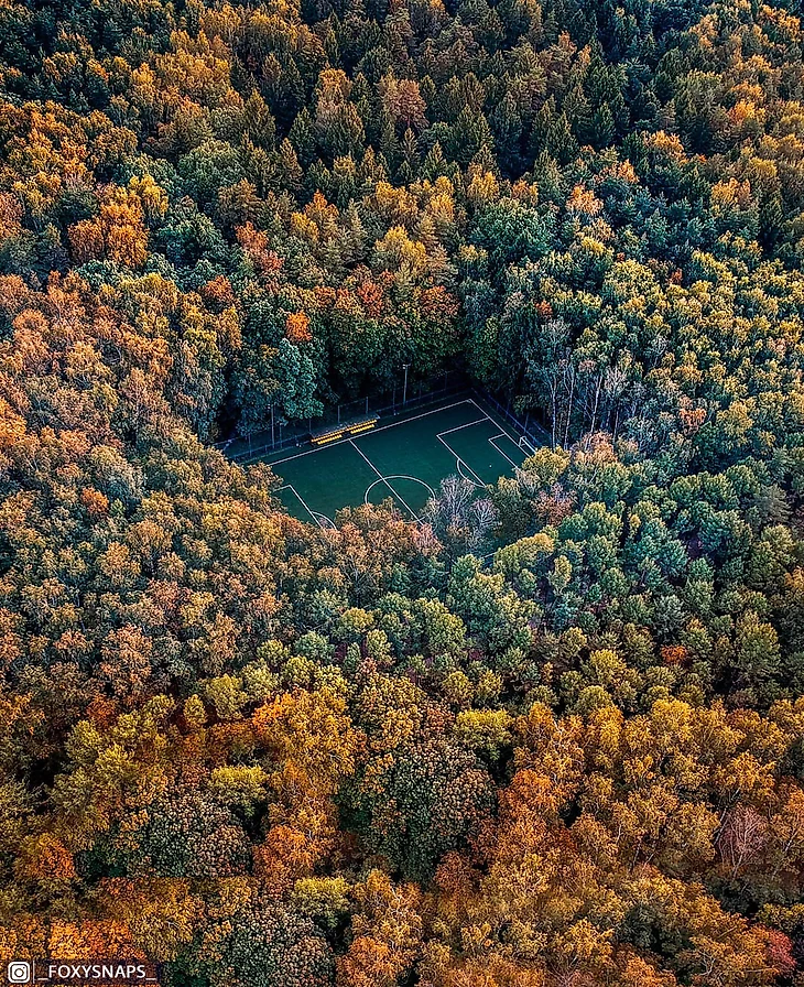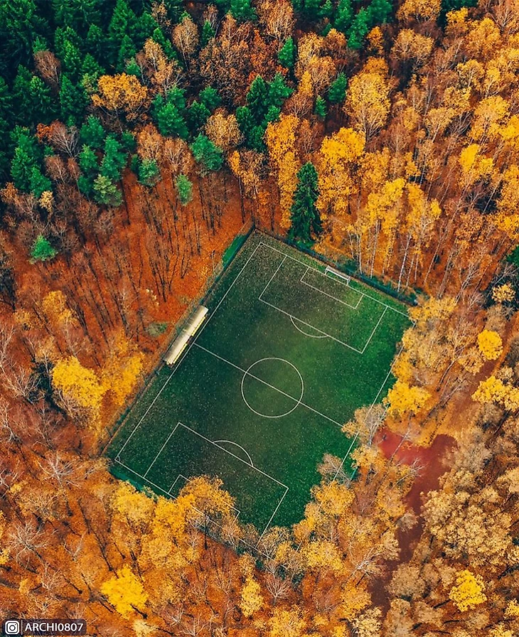 Именно тут, посреди лесных пейзажей и свежего воздуха, расположилось небезызвестное футбольное поле.