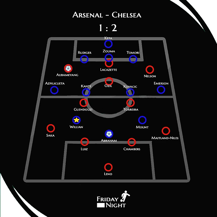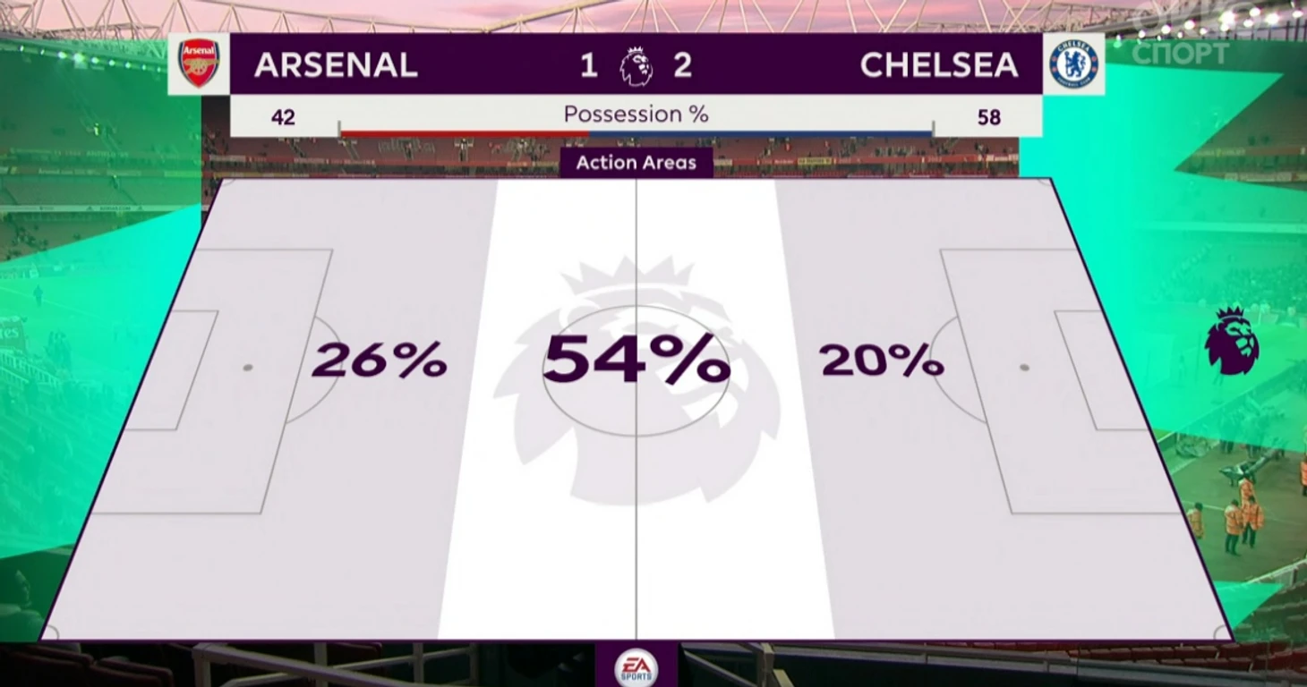 Несмотря на подавляющее владение мячом, «Челси» не смог трансформировать это в опасные моменты у ворот «Арсенала». Команда Микеля Артеты осознанно играла вторым номером и, как оказалось, была неплохо к этому подготовлена. Компактный блок и помощь атакующих игроков «канониров» нивелировал попытки «Челси».