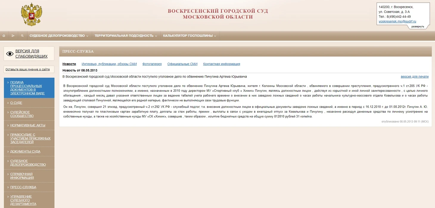Скриншот с интернет-портала воскресенского городского суда Московской области (в крупном размере).