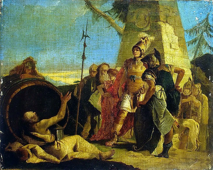 Александр Македонский пошел посмотреть, как живёт философ Диоген.