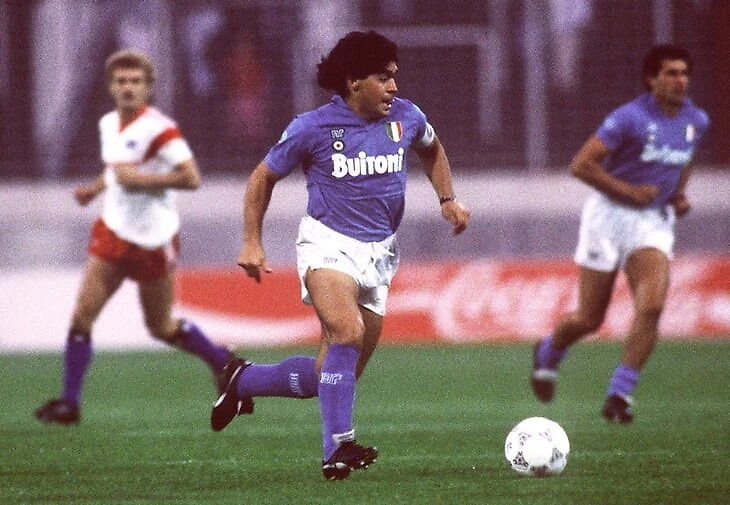 Аргентинец – легенда Неаполя, за местный клуб он выступал с 1984-го по 1991-й. Спереди на дизайнерской футболке – там, где обычно размещают рекламу титульного спонсора, – вышили слово Sophia, отсылка к итальянской актрисе Софи Лорен.