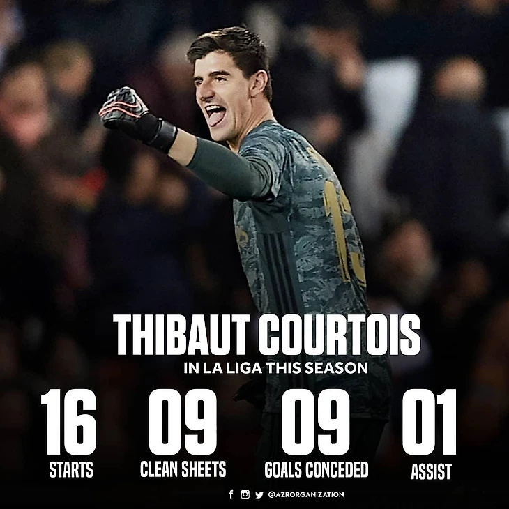 Бельгиец сыграл на ноль 9 матчей из последних 12 во всех турнирах. За этот отрезок Куртуа пропускал лишь в поединках против «Валенсии» (1:1), «ПСЖ» (2:2) и «Сосьедада» (3:1).