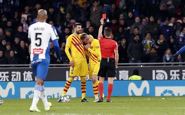 На 75-й минуте Де Йонг решил вернуть валерьянку в руки фанатов Барсы. Френки, который «висел» на жёлтой карточке, решил пойти в обыгрыш в центре поля, потерял мяч и вынужден был фолить. Как итог - вторая желтая карточка, а за ней красная. Пока Семеду переодевался и слушал последние установки от Вальверде, Барса чуть не пропустила второй гол. Китайский легионер хозяев У Лэй пробивал головой точно в дальний угол, но Нето не дал второму удару в створ хозяев превратиться во второй гол.